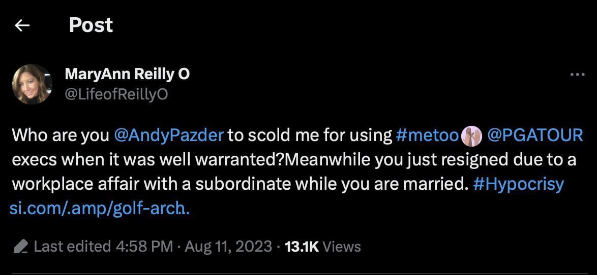 However, recent allegations have come to light that state that Pazder might have resigned due to a workplace affair. Pazder has been a PGAT executive for over 30 years and was accused by MaryAnn Reilly on Twitter of having a workplace affair while being married.