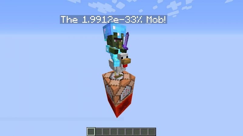 For example, a baby villager zombie wearing diamond armor and riding a chicken has a 0.000000000000000000000000000000001991202975% chance of spawning, as discovered by u/GNiko324 on Reddit.